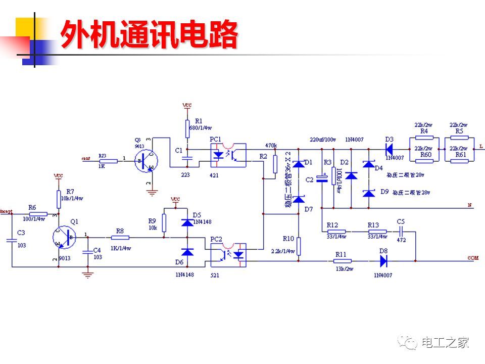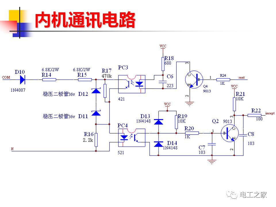 n通訊電路:由室外內通訊發送、接收電路及室內外連接線構成,用于內機和外機之間的通訊,將內機檢測溫度與設置溫度等信號傳遞至外機處理,并﷽將外機處理結果及保護狀況傳遞至內機顯示;