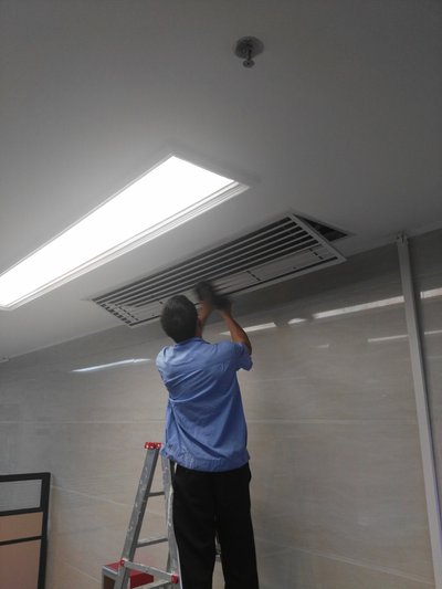 過濾網的清洗:空調清洗的常清洗地方是過濾網。打開室內機殼,觀察內機過濾網有無灰塵及異味。若灰塵多或異味嚴重要對過濾網進行清洗。清洗過濾網時,首先要切斷電源,再打開面板,取出過濾網。用毛刷式吸塵器對過濾網凈。太臟有油污時,可用除污劑或中性肥皂水清洗。用水沖凈并晾干后裝好。用清水沖洗干凈后,用軟布擦干后,插電等35分鐘,將遙控器設置在制冷模式,溫度設定在*的條件下開機運行。試機查隱患空調運行后將遙不同的檔位上運行。觀察內機有無異常噪音。開機運行15分鐘左右